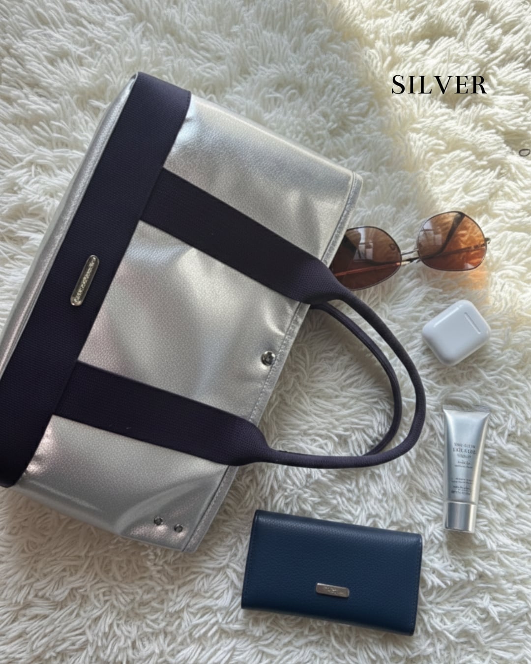 ♡シルバー(バッグ本体)×ネイビー(持ち手)